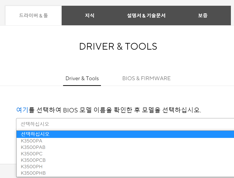 검색후 드라이버&툴을 선택하면 드라이버 설치가 가능하다. 나는 고객센터에 전화했더니 k3500pa를 검색하라고 해서 했지만 k3500p까지만 검색해도 이렇게 나온다.